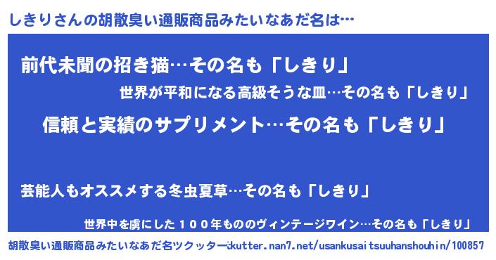 | ヘコむあだ名 | 『しきお』『しきり(笑)』『なまこ酢』 |