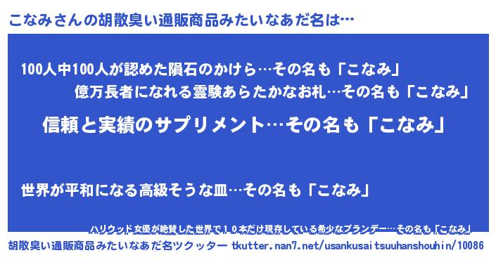| ヘコむあだ名 | 『こなを』『こなもー』『牛乳』 |