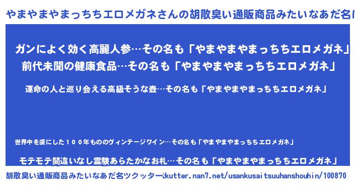 | ヒーロー風カッコイイあだ名 | 『ウルトラやまやまやまっちちエロメガネマン』 |