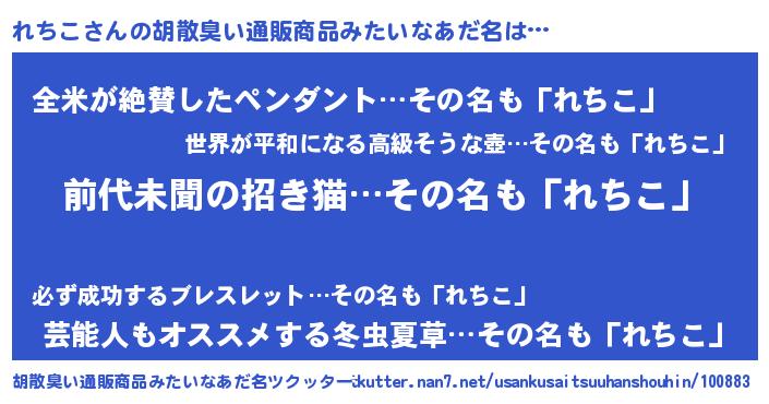 | 意味不明あだ名 | 『永久保存れちこ』『自称れちこ』 |