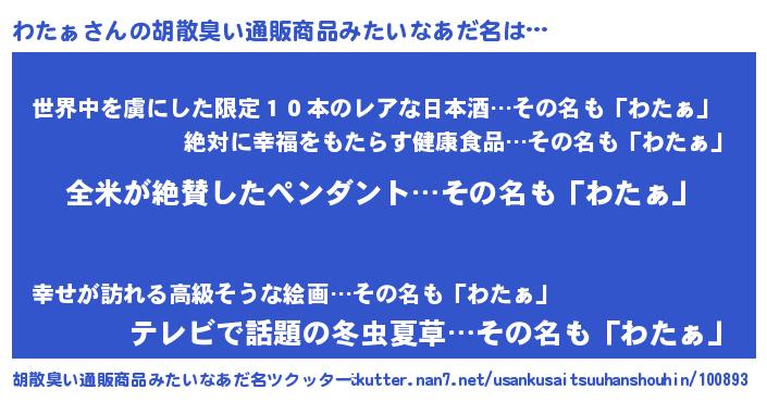 | 意味不明あだ名 | 『とにかく怪しいわたぁ』『自称わたぁ』 |