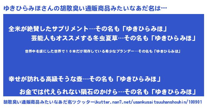 | 意味不明あだ名 | 『住所不定無職ゆきひらみほ(77歳)』 |