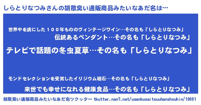 | 意味不明あだ名 | 『自称しらとりなつみ』 |
