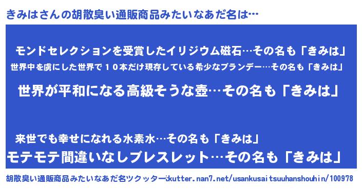 | ファンタジー風あだ名 | 『エターナルキミハー』『クインキット』 |