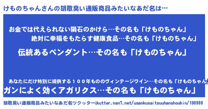 | 意味不明あだ名 | 『とにかく怪しいけものちゃん』 |