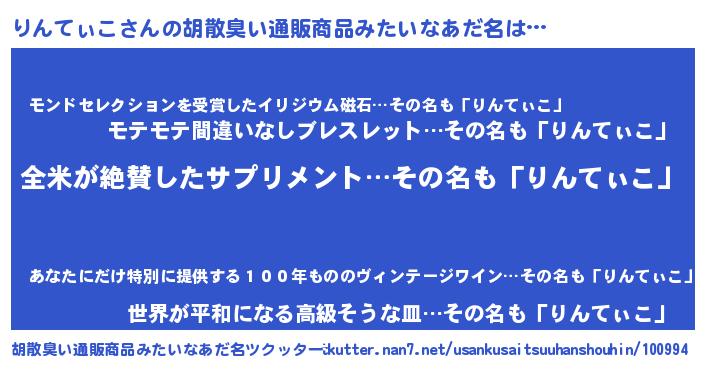 | 意味不明あだ名 | 『とにかく怪しいりんてぃこ』 |