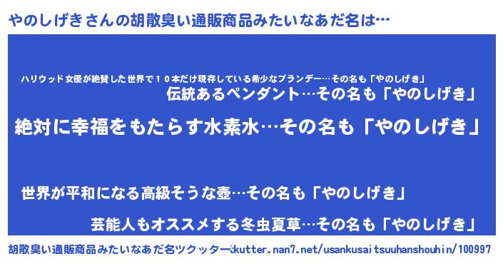 | 意味不明あだ名 | 『永久保存やのしげき』『自称やのしげき』 |
