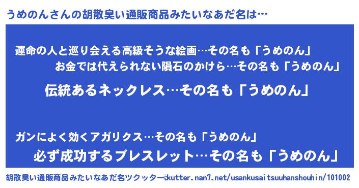 | 意味不明あだ名 | 『とにかく怪しいうめのん』 |