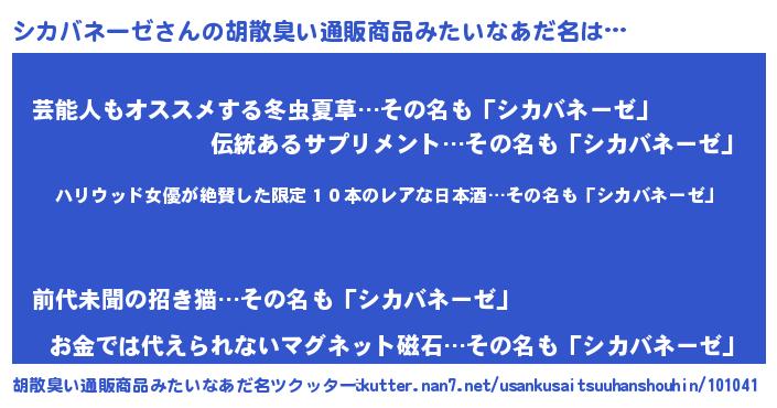 | 料理風あだ名 | 『シカバネーゼのカルパッチョ風』 |