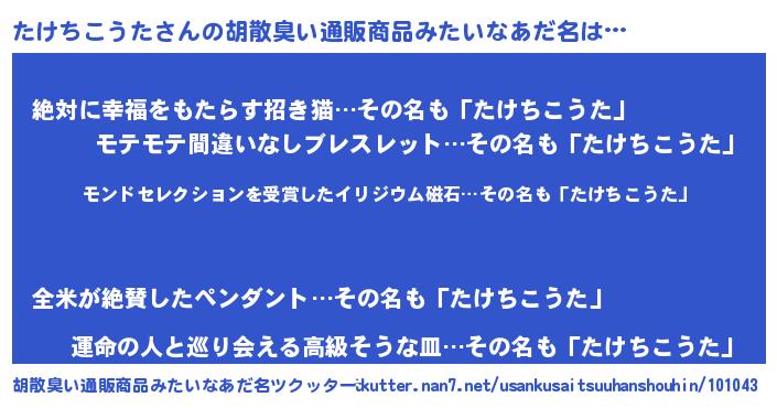 | ヘコむあだ名 | 『たけちこうた(笑)』『つくし』 |