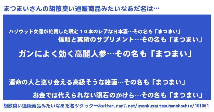 まつまいさんの胡散臭い通販商品みたいなあだ名をツクッター!