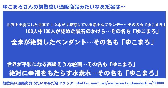 | ヘコむあだ名 | 『ゆこっぺ』『ゆこまろ(爆)』 |