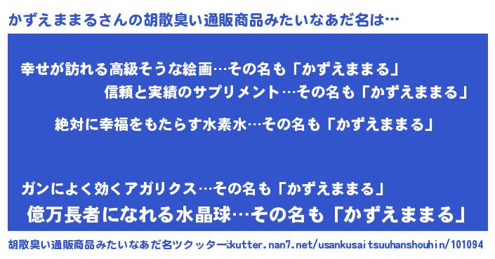 | 男性向けラノベタイトル風あだ名 | 『かずえままるという概念が存在しない退屈な世界 』 |
