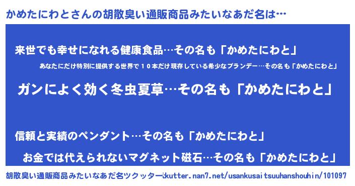 | 意味不明あだ名 | 『自称かめたにわと』 |