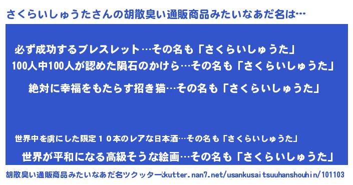 | 意味不明あだ名 | 『永久保存さくらいしゅうた』 |