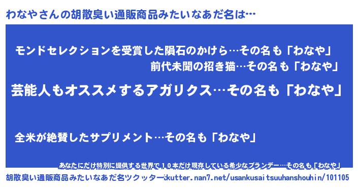 | ヘコむあだ名 | 『わなや(笑)』『わなっ子』 |