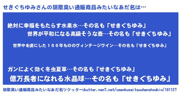 | ヘコむあだ名 | 『せきぐちゆみ(小並感)』『せきっふぃ~』 |