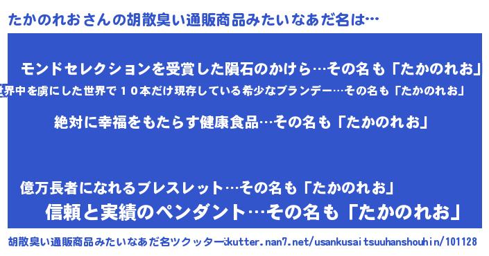 | 意味不明あだ名 | 『永久保存たかのれお』 |
