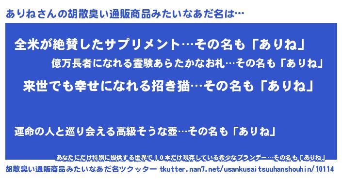 ありねさんの胡散臭い通販商品みたいなあだ名をツクッター!