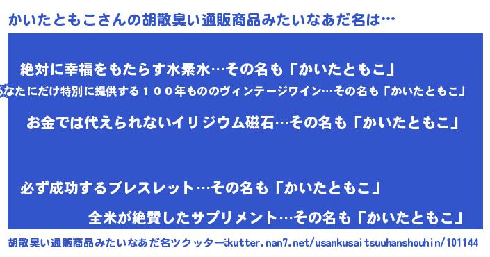 | ヘコむあだ名 | 『かいたともこ(爆)』『かいぷりん』 |