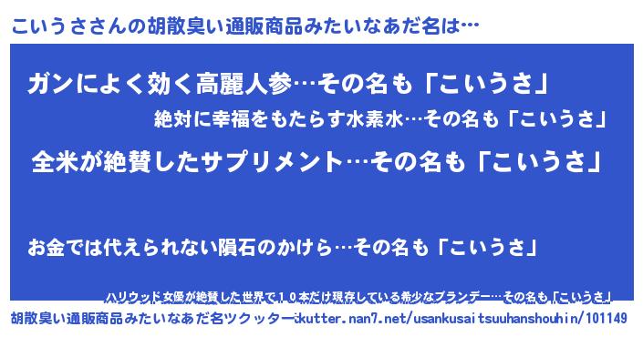 | 意味不明あだ名 | 『とにかく怪しいこいうさ』 |