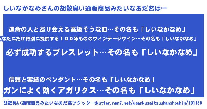 | 肩書あだ名 | 『しいなかなめ社長』『しいなかなめ少将』 |