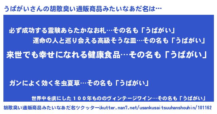 | ヘコむあだ名 | 『うばがい(爆)』『うばもー』 |