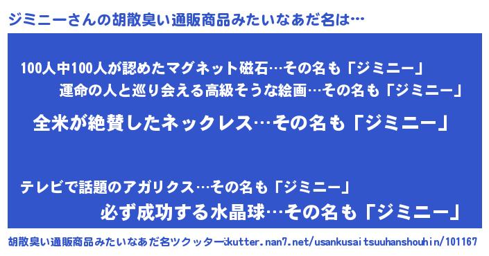 | ヒーロー風カッコイイあだ名 | 『幻影騎士ジミ』『正義の使者ジミニー』 |