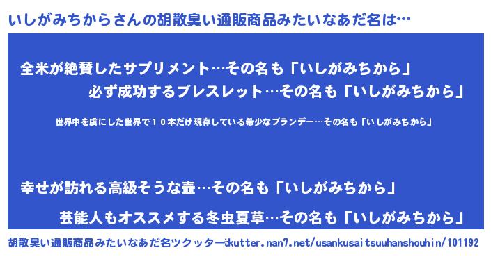 | 肩書あだ名 | 『いしがみちから上級大将』 |