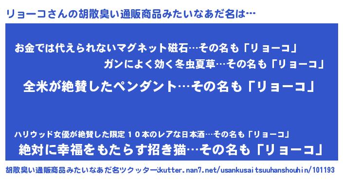 | ヘコむあだ名 | 『リョっちょ』『リョーコ(笑)』 |