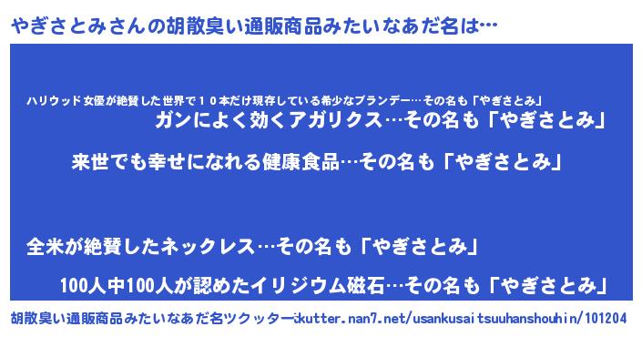 | 欧米人風あだ名 | 『やぎさとみ・ステッグマイヤー』 |