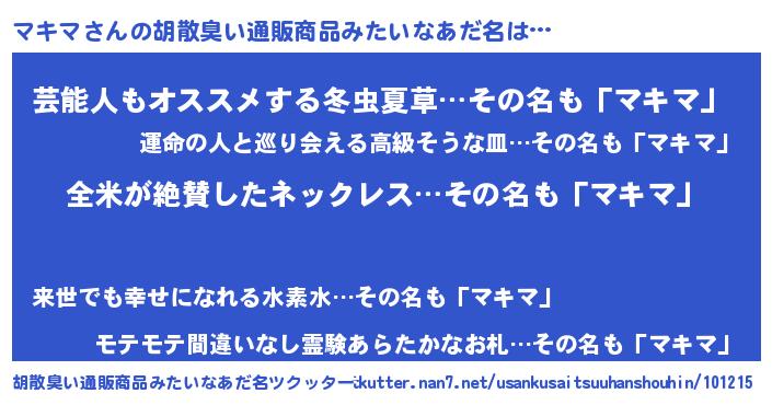 | 恥ずかしいあだ名 | 『マキリンリン』『マキマデラックス』 |
