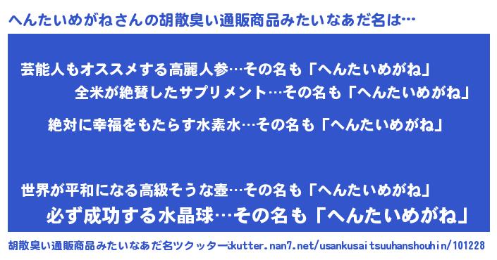 ↓この胡散臭い通販商品みたいなあだ名にコメントする!