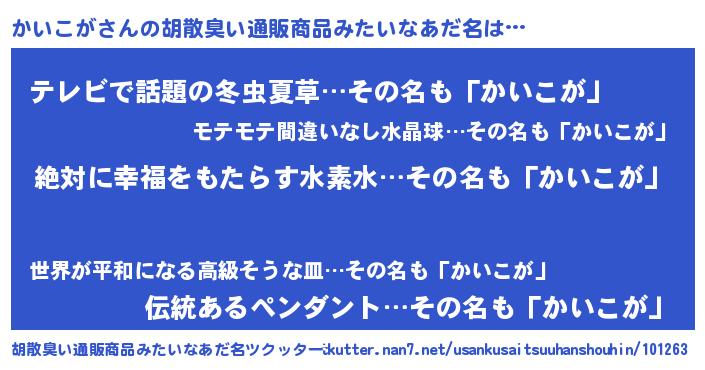 | ヘコむあだ名 | 『かいこが(震え声)』『かいっちょ』 |