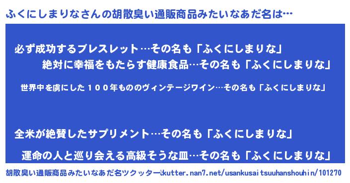 | ヘコむあだ名 | 『ふくにー』『牛乳』『ふくぷりん』 |