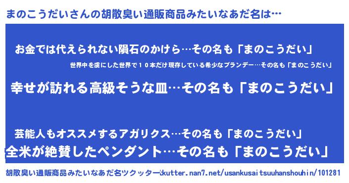 | 意味不明あだ名 | 『まのこうだいフォーエバー』 |
