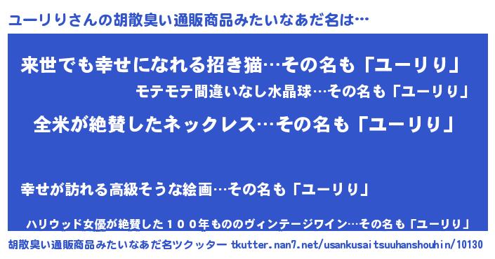 | ヘコむあだ名 | 『ユーっ子』『ユーリり(小並感)』 |