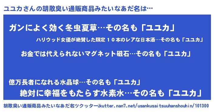 | 意味不明あだ名 | 『眠気覚ましガムユユカ味』『自称ユユカ』 |