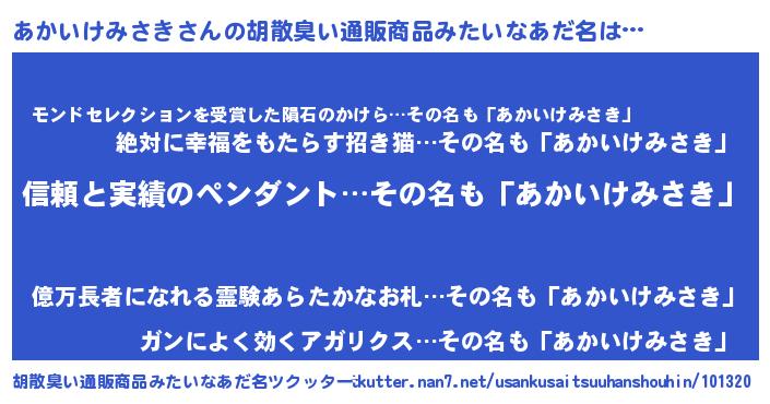 | ヘコむあだ名 | 『あかっちょ』『あかいけみさき(震え声)』 |