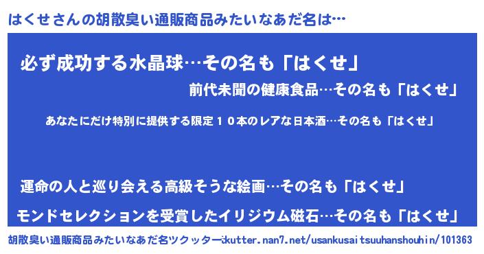 | ヘコむあだ名 | 『はくにゅー』『はくせ(笑)』 |