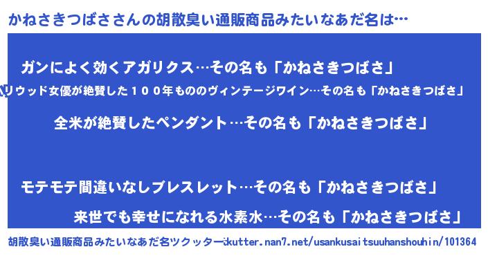 | 意味不明あだ名 | 『とにかく怪しいかねさきつばさ』 |