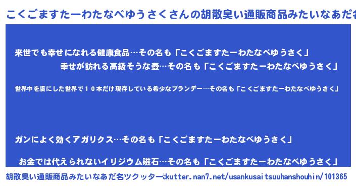 | 欧米人風あだ名 | 『ダレノガレこくごますたーわたなべゆうさく』 |