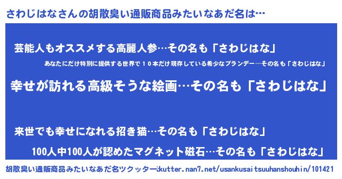 | 男性向けラノベタイトル風あだ名 | 『サワジハナスレイヤー』 |