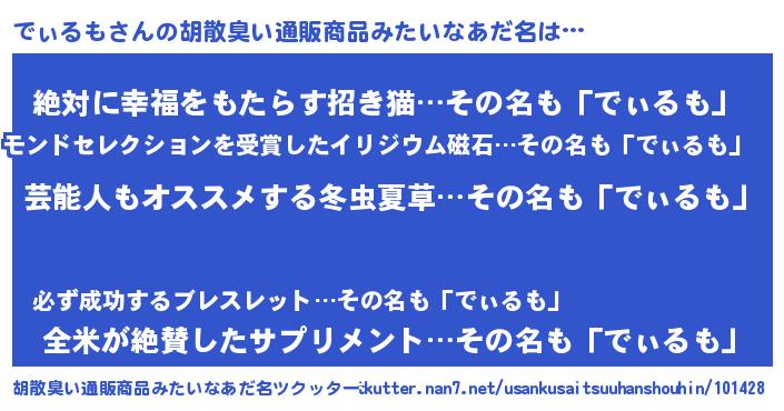 | 意味不明あだ名 | 『自称でぃるも』『永久保存でぃるも』 |