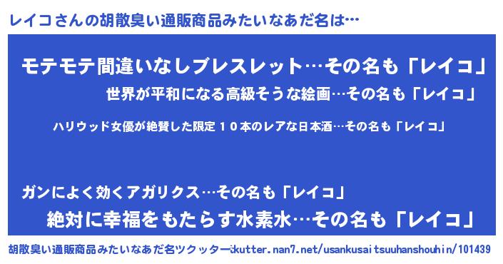 | ヘコむあだ名 | 『レイにゅー』『レイコ(笑)』『牛乳』 |