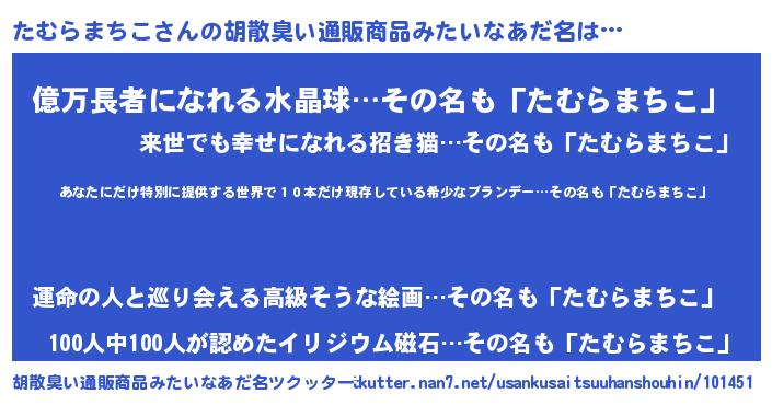 | 肩書あだ名 | 『たむらまちこ上級大将』 |