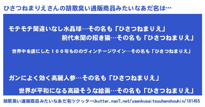| 欧米人風あだ名 | 『アンジェラ・ひさつねまりえ』 |