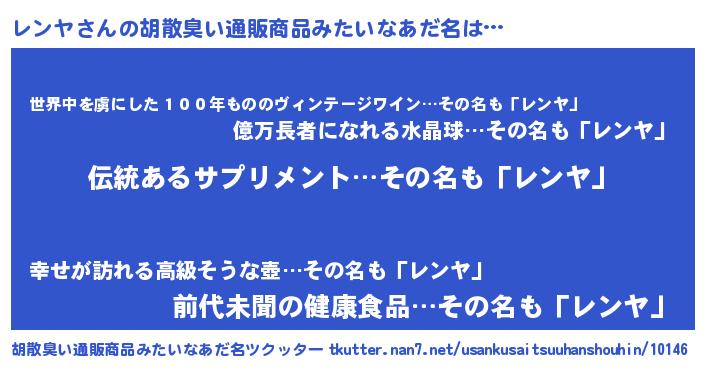 | 意味不明あだ名 | 『とにかく怪しいレンヤ』 |