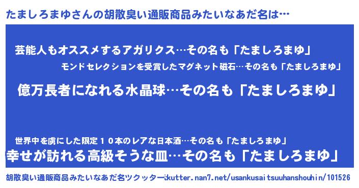 | 男性向けラノベタイトル風あだ名 | 『タマシロマユアートオンライン』 |