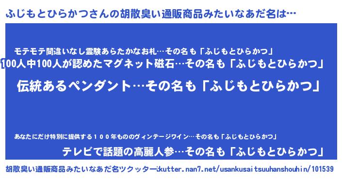 | 男性向けラノベタイトル風あだ名 | 『転生したらふじもとひらかつだった件』 |